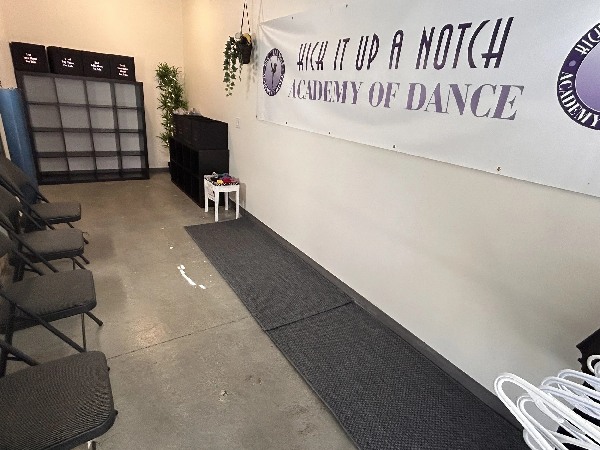 Our new space features a large studio, a smaller studio, a student lounge, a family waiting room, and additional storage space. Check out the images below for a sneak peek at our dance home!